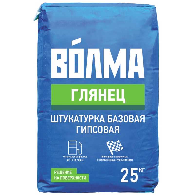 «ВОЛМА-Глянец» - штукатурка гипсовая базовая для выравнивания стен и потолков внутри отапливаемых помещений с нормальной относительной влажностью под дальнейшее финишное шпаклевание. При соблюдении технологии применения дает глянцевую поверхность*.